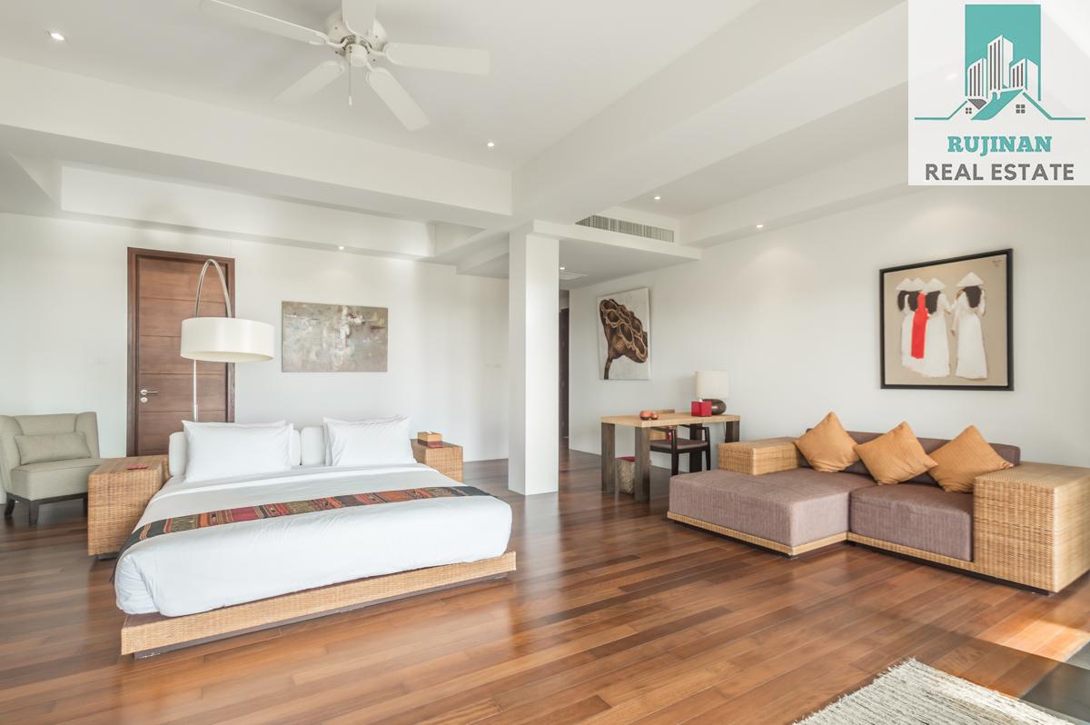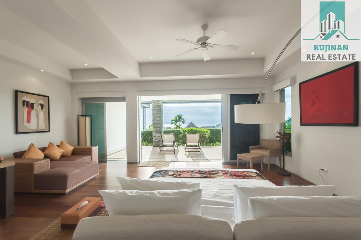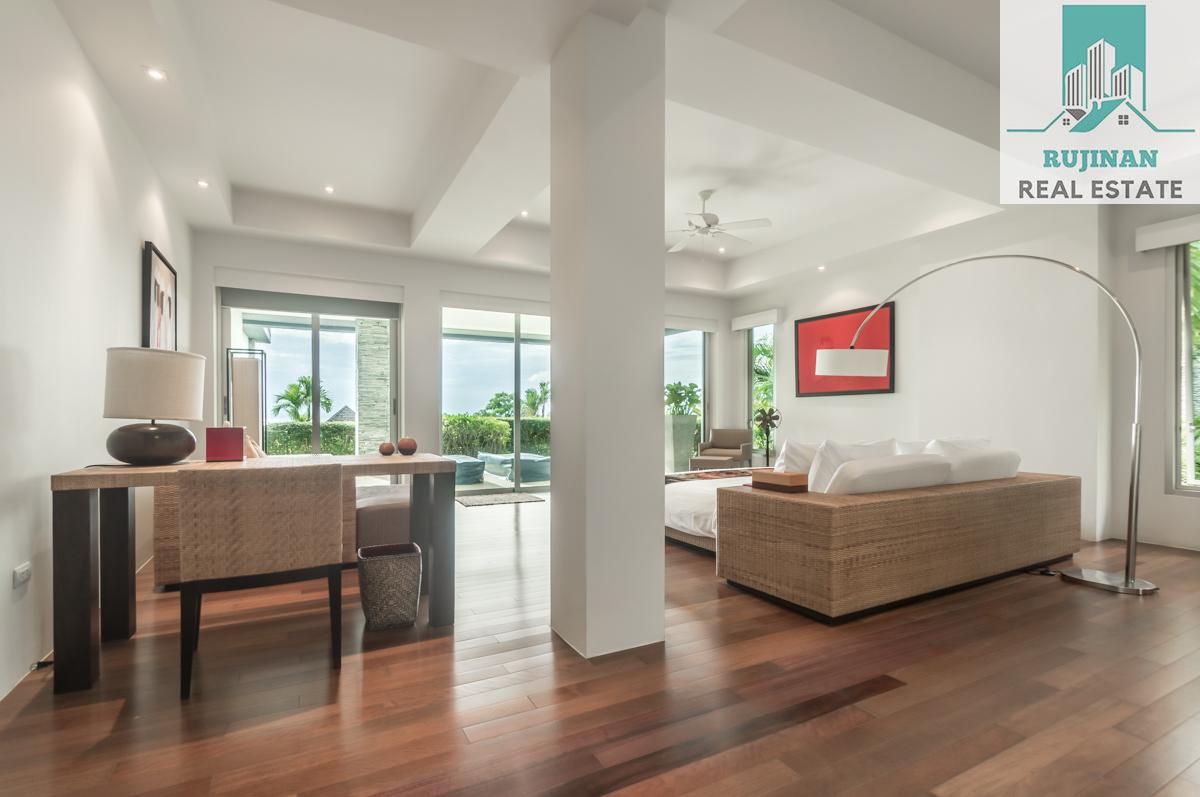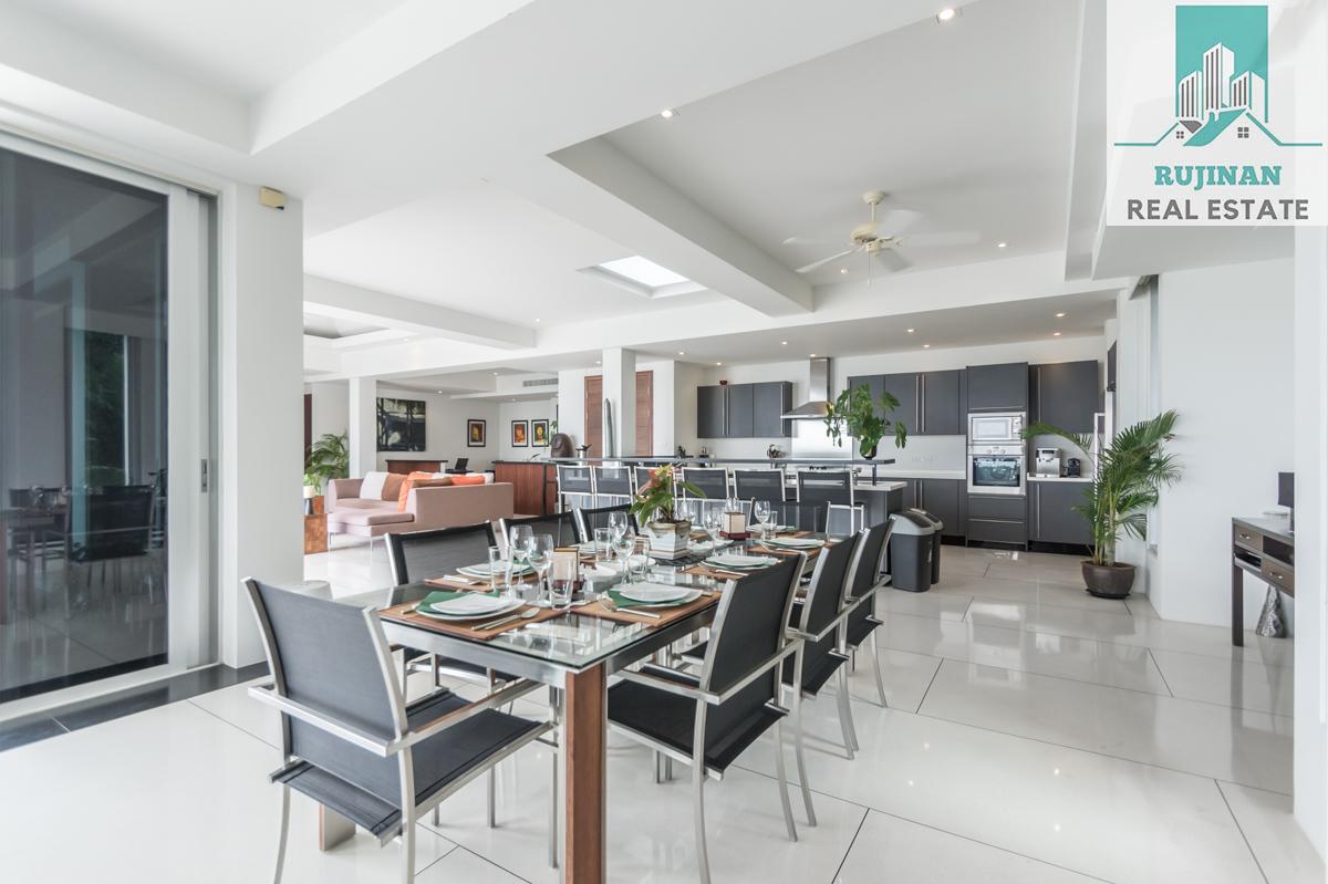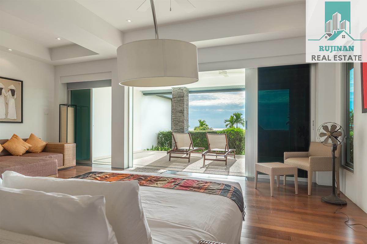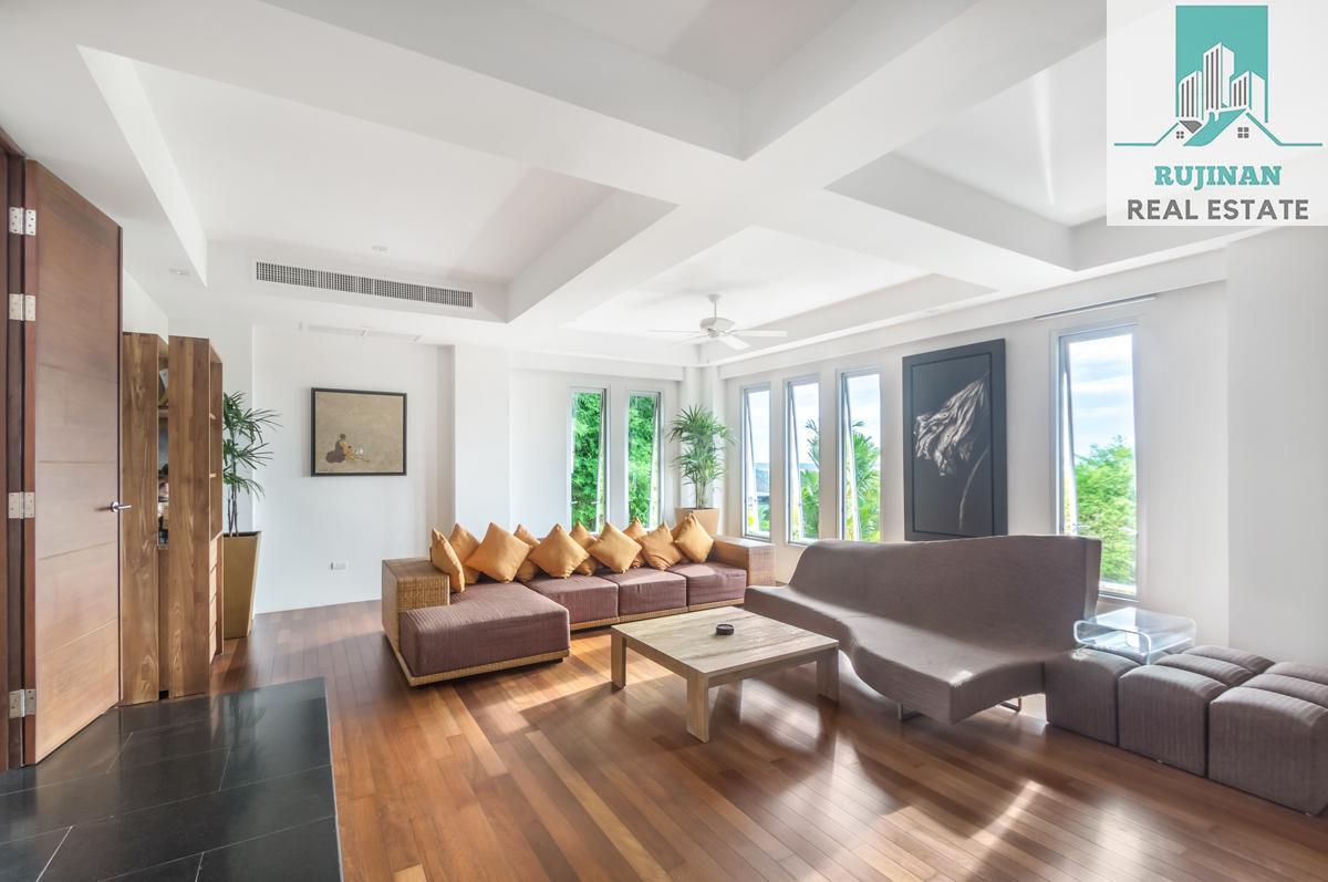 An impressive sea view pool villa, in a tranquil location overlooking Layan Beach and the whole of Bang Tao Bay with a beautiful sunset sea view. Masses of space and 5 large ensuite double bedrooms over two levels designed in a contemporary Asian architectural style.