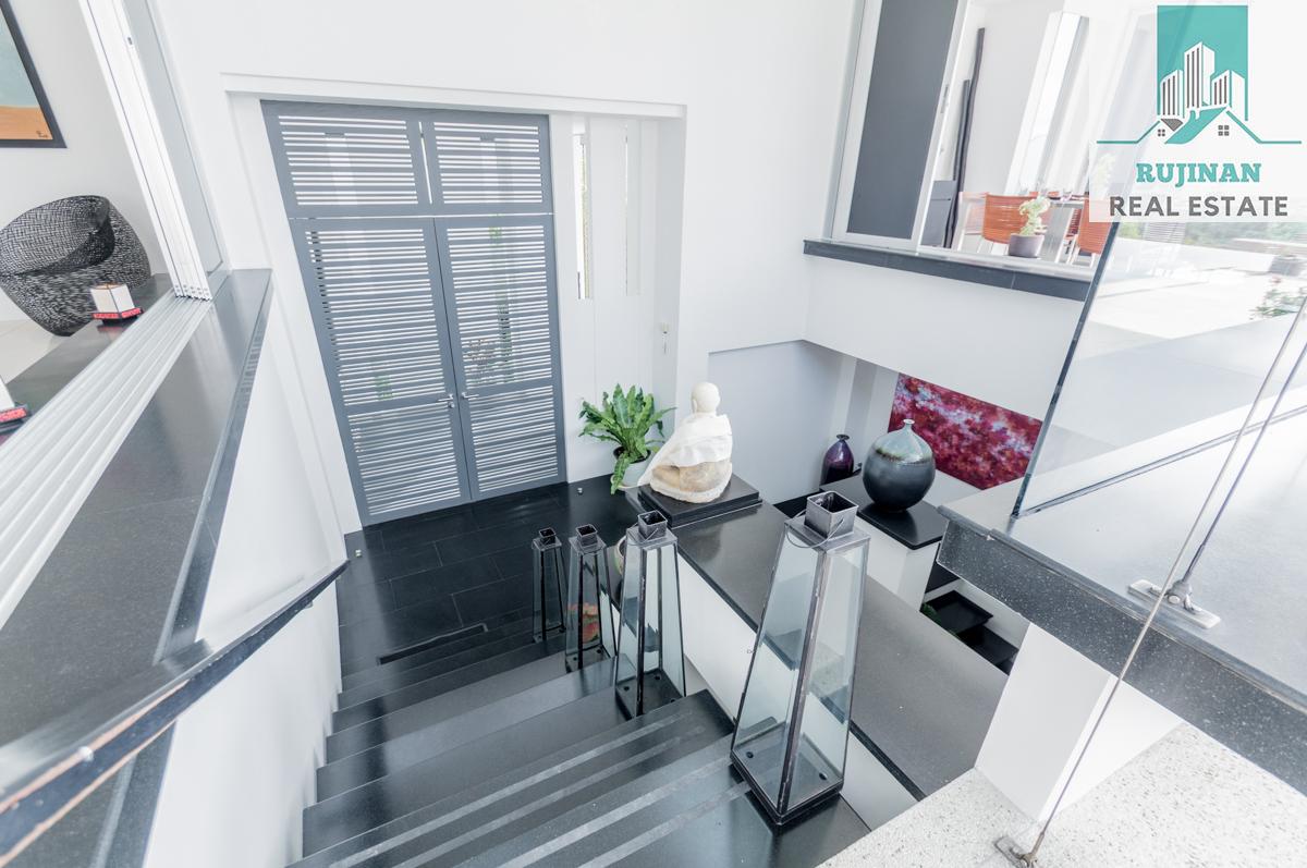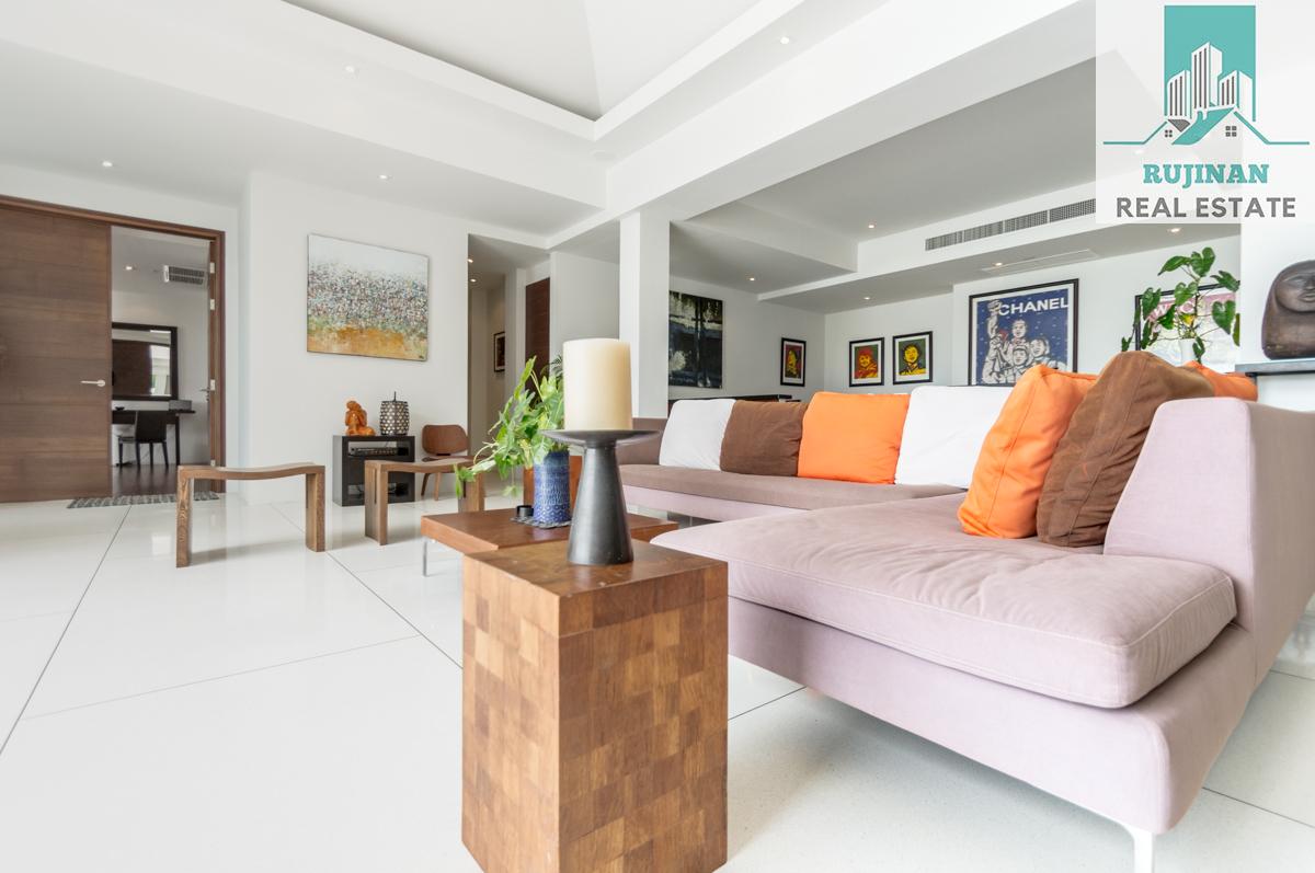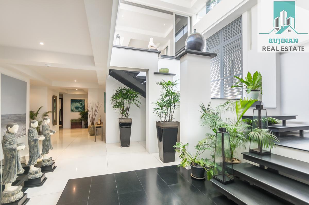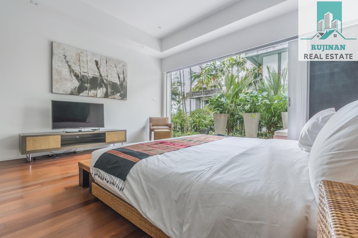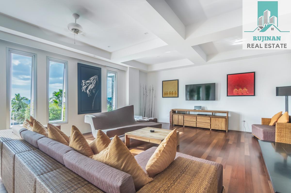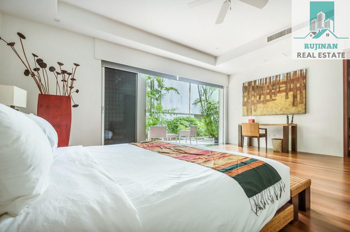 An impressive sea view pool villa, in a tranquil location overlooking Layan Beach and the whole of Bang Tao Bay with a beautiful sunset sea view. Masses of space and 5 large ensuite double bedrooms over two levels designed in a contemporary Asian architectural style.